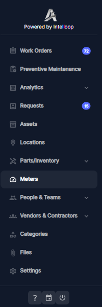 - Asset Management (Assets, Locations, Parts/Inventory, Meters)