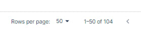 For each Menu item opened, and at the bottom right, the interface provides users with the ability to control the number of product rows displayed per page. A dropdown menu labeled "Rows per page" offers several options, up to 50 rows per page. By selecting a different value from this dropdown, users can adjust the density of the product grid, displaying more or fewer items simultaneously