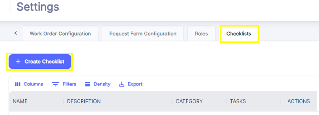 To access the Checklist Setting, navigate to Settings > Checklists from the main menu, as shown in the below image.