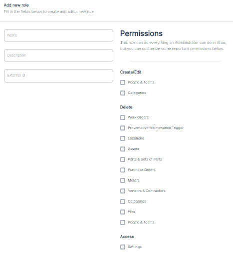 For example, you could create a "Maintenance Planner" role with permissions to create work orders, view/edit the preventive maintenance program, manage assets, but restrict access to financial reports.