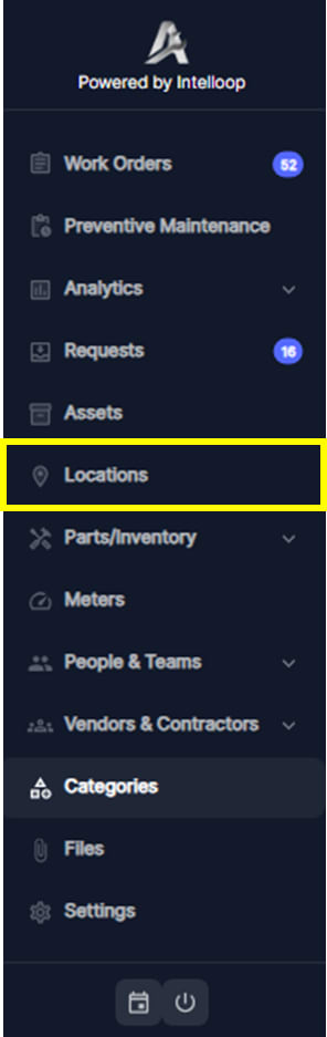 - From the left sidebar menu, locate and click on the "Locations" option to access the Locations Record module