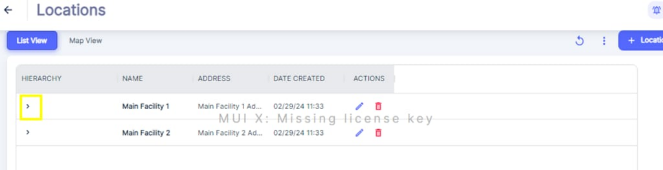 - Click on the arrow icon to expand and view any child locations ( or Sub-location which could be anything from individual buildings, floor levels to separate locations altogether) nested under a parent location
