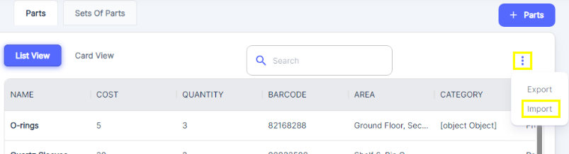 If you have a large number of parts to add, ATLAS CMMS system also provides an import option. To use this feature: