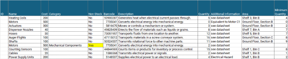 - The system will process the file and import the parts into the CMMS database.