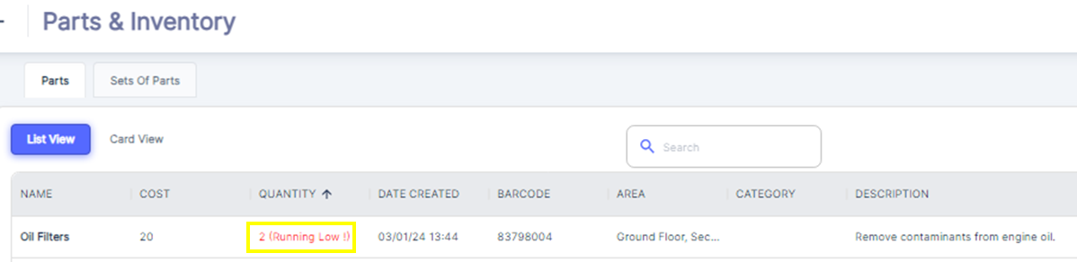 The Atlas CMMS system includes a feature that allows users to filter and identify parts that are running low in inventory. This feature is particularly useful for maintaining optimal stock levels and ensuring that maintenance operations are not disrupted due to a lack of necessary parts. This alert system helps users to proactively reorder parts before they run out completely, maintaining a seamless supply chain and avoiding potential downtime.To effectively set the minimum quantity for parts, it is important to consider several factors: