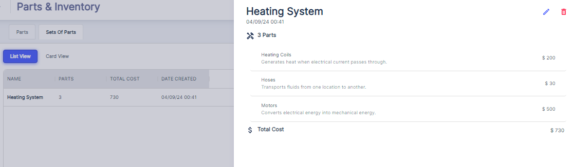 The Atlas CMMS system allows users to create and manage "Sets of Parts," which are groups of individual components commonly used together for specific maintenance tasks or equipment assemblies. Organizing spare parts into sets offers several benefits: