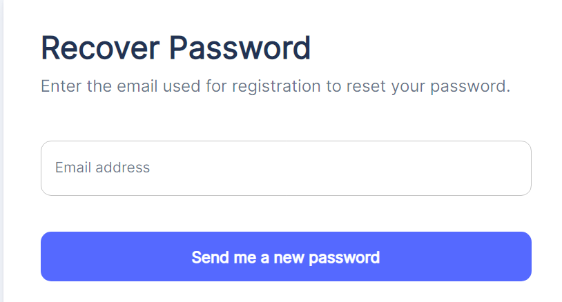 Then ensure to enter the correct email address that you used when subscribing to the service. After entering your email, click the Send me a new password button in blue, as seen in picture below: