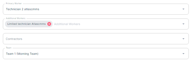 and navigate to 'Primary Worker' to assign a new primary worker, or 'Additional Workers' or ‘Team’ to add or change team members.