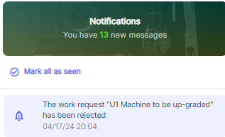 - Rejected Requests: If the work request is rejected by an Admin or Limited Admin, the Requester will get a notification and be able to see the feedback provided for the rejection. This feedback offers insights into why the request was not approved and helps the Requester understand the decision-making process.